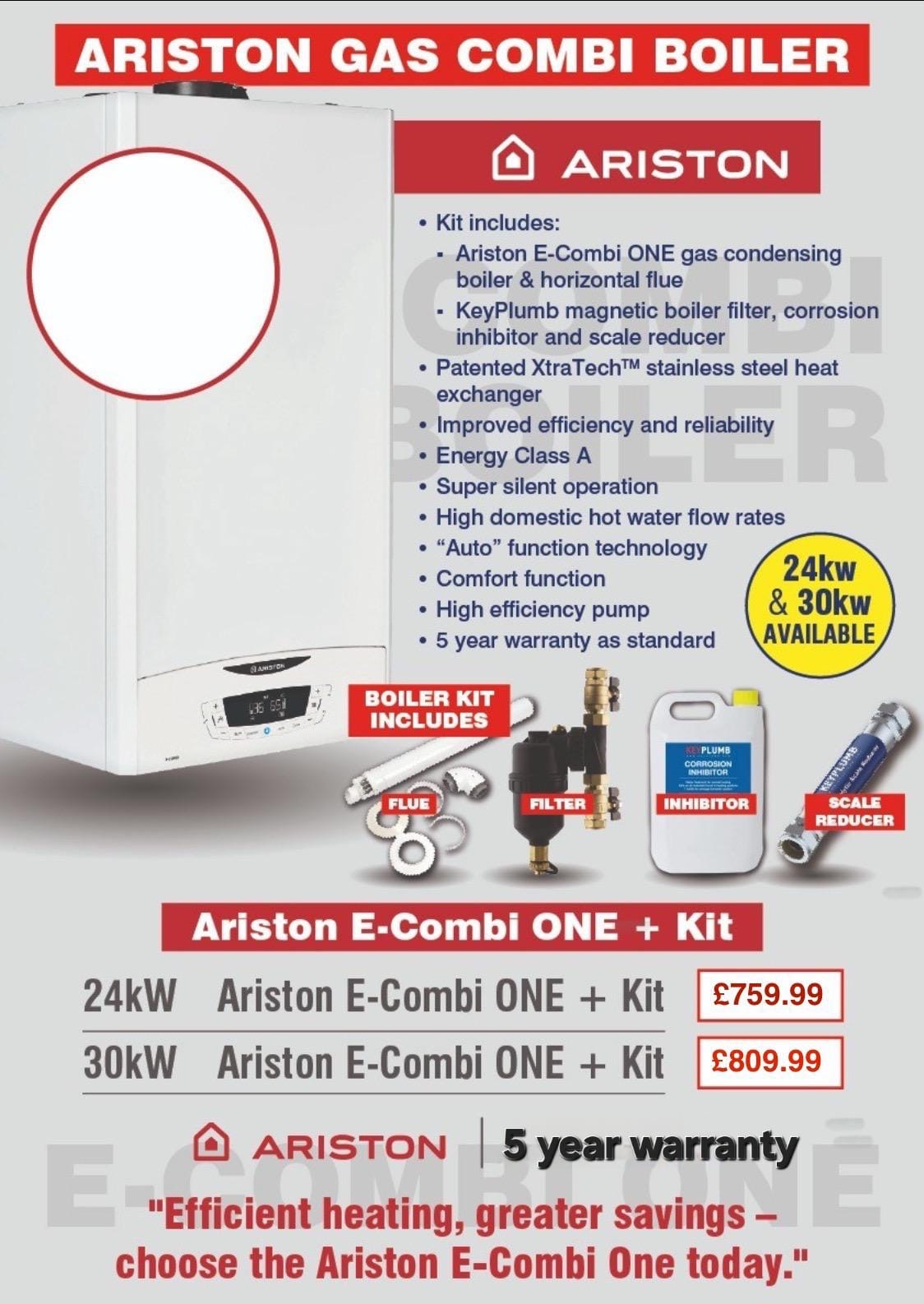 Ariston E-Combi ONE 24kw with Horizontal Flue