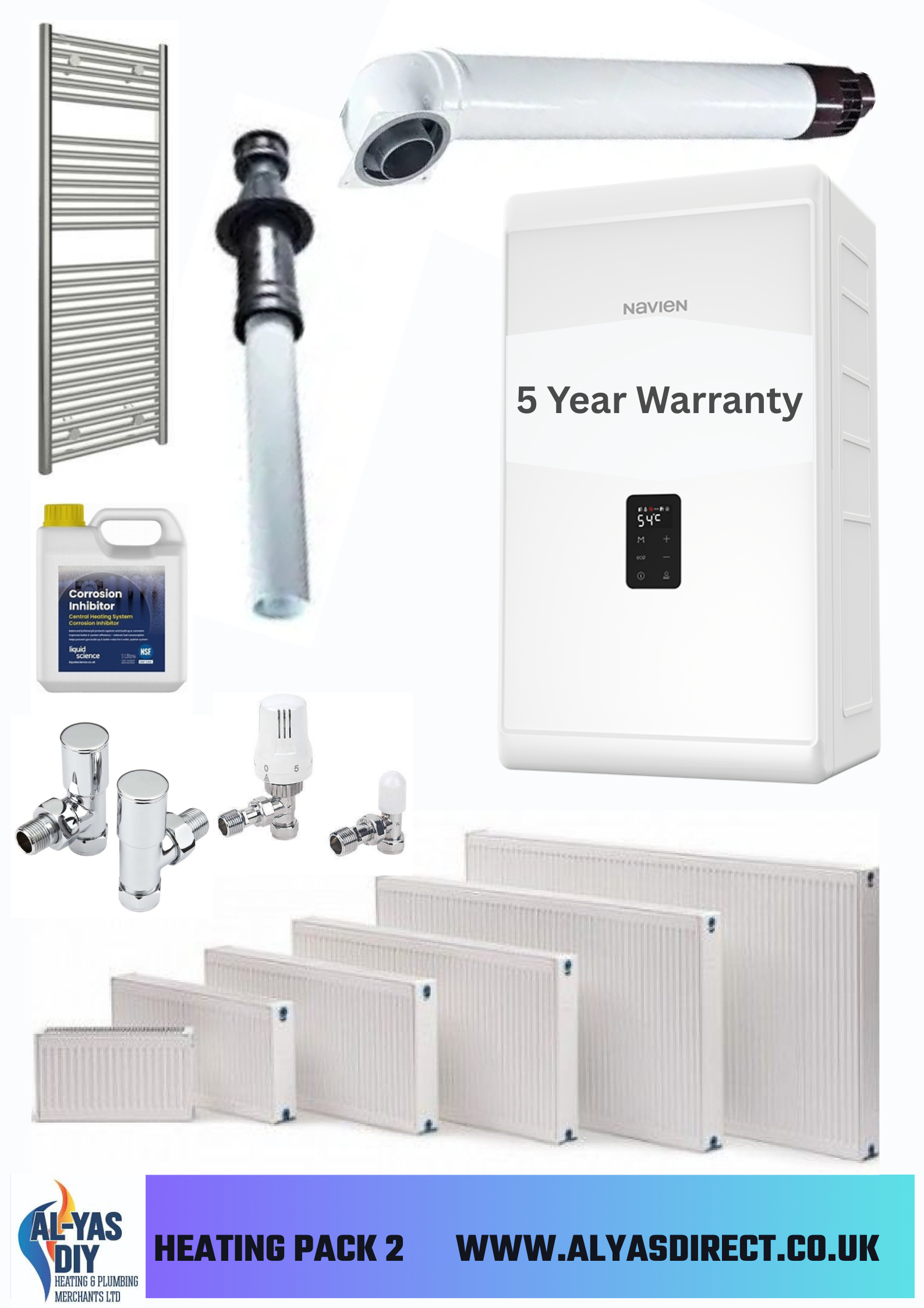 Upgrade your home with a fully bundled, energy-efficient central heating system powered by Navien’s advanced combi technology. This package includes your choice of Navien NCB combi boiler, 6 compact radiators, a chrome towel radiator, full valve set, system protection chemicals, and full manufacturer warranty support — everything needed for a complete heating upgrade.